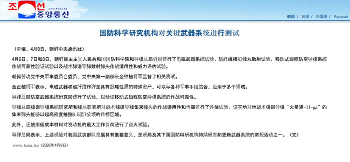 朝中社近日发布公告,证实朝鲜国防科学院与导弹总局近期连续开展了多轮重要武器系统测试,其中最受关注的,当属可适配火星-11甲弹道导弹的电磁脉冲(EMP)武器系统、石墨碳纤维断电弹药和集束弹头的试验。